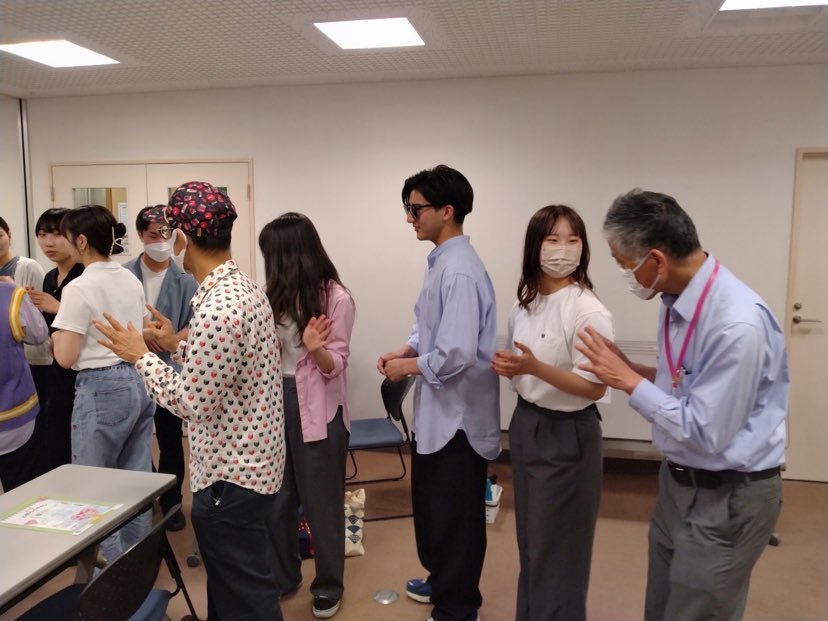 外国の人と話すときに言葉に頼らず、体で表現することをアイスブレーキングとして講座の冒頭で実施、体の表現の大切さが伝わったことと、会場全体の場が和んだアイスブレーキングでした。